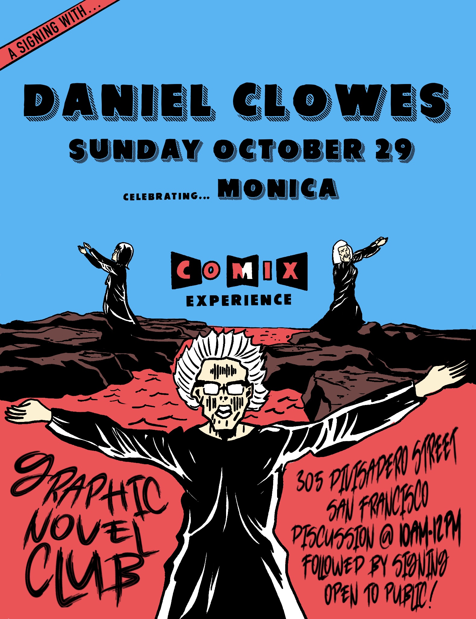 flyers for comix experience graphic novel club events + signings 2020-present